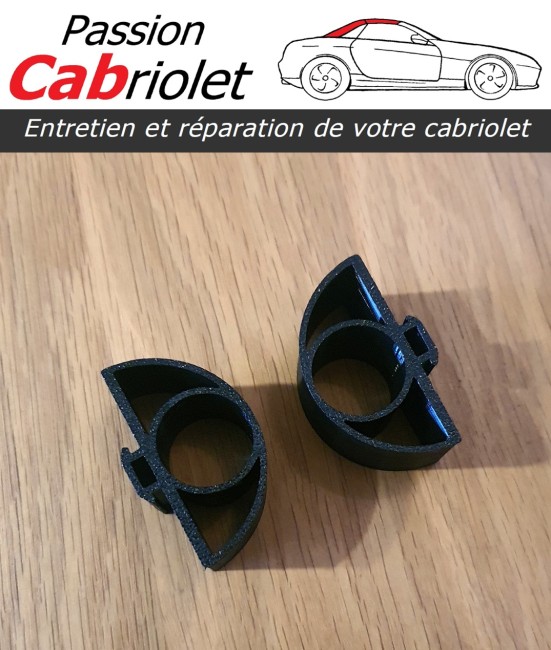 Ces 2 tampons font partie intégrante de votre toit escamotable. Ils sont présents afin d'éviter que les 2 obturateurs latéraux (parfois appelés "oreilles") évitent de bouger lorsque vous roulez en mode "coupé". Dans le cas où ces petites pièces seraient absentes, le risque est tout simplement la rupture du bras d'obturateur, suite par exemple, à un choc un peu plus intense que la normale (ralentisseur, nid de poule...).
